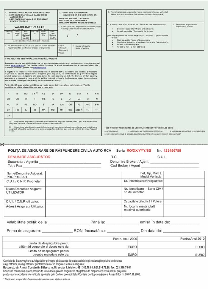 Documentul Carte Verde are relativ puține rubrici care trebuie completate. Important este ca acestea sa fie completate corect, fara nicio adaugire, modificare sau ștersatura care poate duce la falsitatea documentului in cazul unui control. De aceea toți agenții Omniasig sunt sfatuiți sa anuleze aceste documente in cazul in care s-a strecurat vreo greșeala și sa completeze corect un nou document, deși costurile unui set de documente pentru polița RCA sunt destul de costisitoare. Trecand la rubricile care trebuie completate in cazul documentului Carte Verde, acestea se refera la: