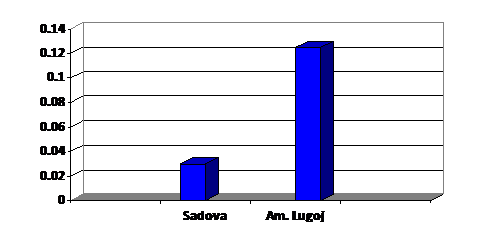 Fig.8 Variația amoniacului din apa raului Timiș, inainte și dupa Caransebeș