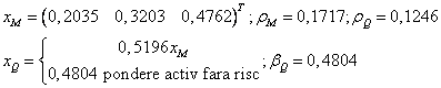 Utilizand rezultatele de mai sus putem scrie structura portofoliului eficient P , cel care asigura investitorului o rentabilitate ρ la riscul minim.