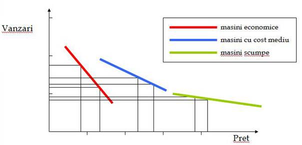 Sensibilitatea clientului la pret scade invers proportional cu costul, astfel incit un cumparator de masina economica va considera pretul un factor decisiv, pe cind clientul unui model de lux nu va acorda o mare importanta pretului. Cu alte cuvinte, in cazul masinilor ieftine pretul este hotarator, pe cand la masinile scumpe diferenta de pret nu constituie un factor relevant la decizia de cumparare.