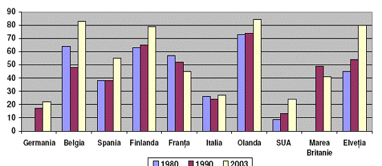 Figura nr. 1. Evolutia gradului de concentrare bancara (C5)in cateva tari OECD