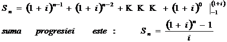 Pentru primul leu valoarea actualizata este iar pentru ultimul dat la inceputul anului n are valoarea v . Deci an , valoarea actuala a rentei , este o progresie geometrica cu rata v a carui suma este :
