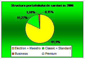 In structura portofoliului de carduri, incepand cu 2005 s-a inregistrat o inversare a ponderii in favoarea cardurilor bancare emise sub licenta Visa(fig 2). Daca se tcne cont insa de faptul ca toate IFN-urile, cu exceptia EFG Euroline Services, au in circulatie peste 500.000 de carduri valide emise tot sub licenta MasterCard, putem concluziona ca in toata aceasta perioada portofoliul de carduri MasterCard - atat bancare cat si nebancare - a fost in permanenta mai mare decat cel al Visa.