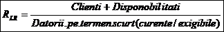 semnifica capacitatea de plata imediata a datoriilor firmei si se considera un rezultat mutumitor daca valoarea raportului este mai mare de 0,3.