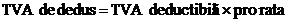 Taxa de dedus intr-un an calendaristic se determina provizoriu prin inmultirea valorii taxei deductibile pentru fiecare perioada fiscala din acel an calendaristic cu pro-rata provizorie, determinata pentru anul respectiv.
