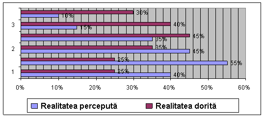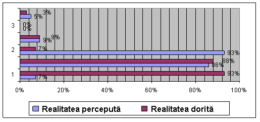 Din figura se observa ca mai mult de jumatate din subiecti (66% manageri si 80% salariati) considera organizatia in care activeaza, in primul rand, locul unde se castiga surse pentru existenta, doar o mica parte din manageri interesandu-se de situatia si perspectivele ei.