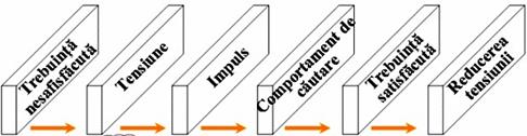 Motivatia trebuie analizata si ca un proces de satisfacere a trebuintelor (figura 1.3.). Trebuinta este o stare interna de necesitate care face ca anumite scopuri sa fie atractive. Atata timp cat este nesatisfacuta, ea creeaza o tensiune interna care stimuleaza individul, antrenandu-l intr-un comportament prin care acesta urmareste satisfacerea trebuintei si reducerea tensiunii (Zlate, 1981).
