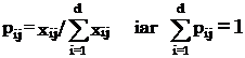 Pentru valorile tij trecute prin procesul de normalizare, se utilizeaza relatia: