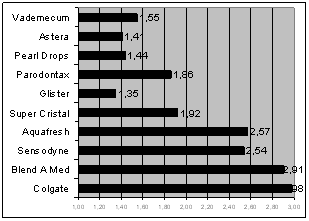 Media intentiei de recomandare a marcii Colgate in functie de calitatea perceputa a acesteia