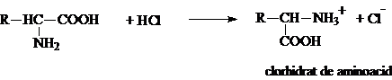 Gruparea - NH2 din molecula de aminoacid accepta protoni la perechea de electroni neparticipanti ai azotului: