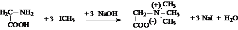 Aminoacizii se alchileaza cu iodura de alchil in mediu bazic. Astfel, prin metilarea glicocolului se obtine derivatul trimetilat al acestuia, numit betaina, utilizat ca donor de grupe