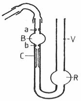 cu un rezervor (R), prelungit cu un tub vertical (V). Extremitatea