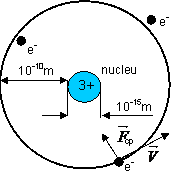 c. Electronii se invart in jurul nucleului pe traiectorii circulare. Nucleul exercita asupra electronilor forte de atractie electrostatica care joaca rol de forte centripete.