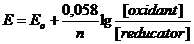 Pana la punctul de echivalenta, potentialul se calculeaza deci cu ajutorul formulei: