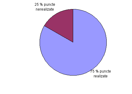 Din analiza tabelului analitic nr. 6 rezulta ca s-au realizat 46 de puncte din totalul de 60 de puncte. Rezulta deci ca punctele realizate reprezinta 76,67 %, iar punctele nerealizate reprezinta 23,33%.
