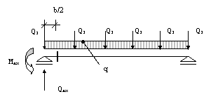 q q este incarcarea uniform distribuita care actioneaza asupra grinzii pe latimea reazemului;