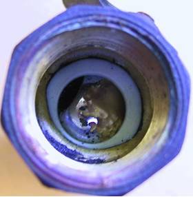 Fig. 2.24 - Semne ale atacului cu hidrogen sulfurat - gauri rotunde cu partea inferioara bine conturate. |