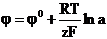 unde R este constanta universala a gazelor (8,3166 J/mol K) T-temperatura absoluta F-numarul lui Faraday (96500 C), z-nr de electroni implicati in reactia de ionizare a metalului, iar a- activitatea ionilor metalului in solutie .