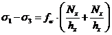 de unde se determina σ3, cu care apoi, folosind expresiile (b) si (c), se detemina tensiunile σ1 si σ2.
