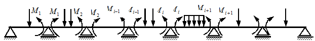 Fie o grinda continua de n ori static nedeterminata. Prin introducerea de articulatii pe reazemele intermediare se obtine sistemul de baza static determinat, format dintr-o succesiune de grinzi simplu rezemate, incarcate cu sarcini exterioare si cu momente necunoscute introduse in articulatii si care asigura continuitatea grinzii pe reazeme (figura 17).