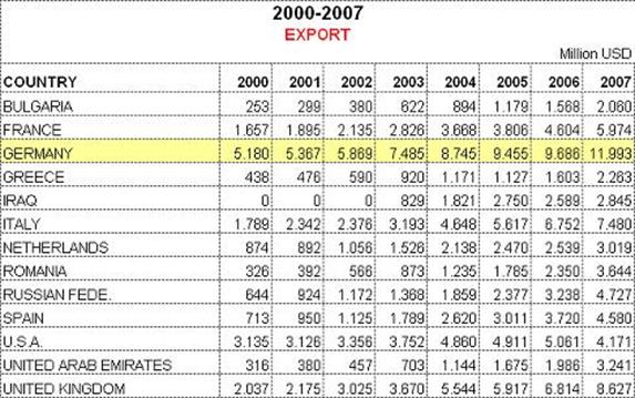 Tarile catre care exporta Turcia in perioada 2000-2007