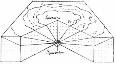 Datorita faptului ca focarul are un anumit volum, la suprafata Pamantului cutremurul se manifesta cu o intensitate maxima, pe o anumita suprafata, denumita regiunea epicentrala sau regiunea pleitoseismica. Suprafata pe care intensitatea cutremurului este aceeasi se numeste izoseismica. Intersectiile dintre suprafetele izoseismice cu cea a Pamantului se numesc linii izoseismice sau izoseiste (fig. 5). Ele au forma sinuoasa si sunt dispuse concentric in jurul epicentrului. Aspectul lor este determinat de forma si adancimea focarului, de structura geologica a scoartei etc.