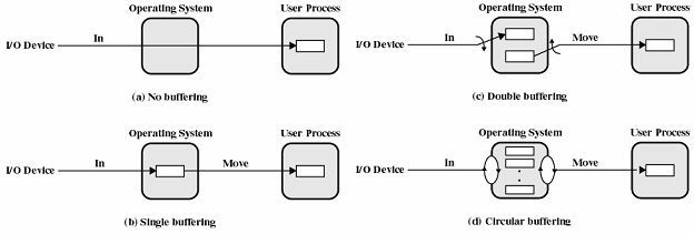 // transferul datelor de la/catre un dispozitiv de I/O se poate face orientat pe blocuri (cazul harddisk sau alte dispozitive de stocare secundare) sau pe streamuri (imprimante, porturi, terminale, mouse).