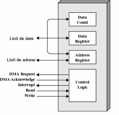 carora veti putea vedea ca viteza de acces la dispozitivul de I/O este total necorespunzatoare. Din aceasta cauza s-a ajuns la utilizarea unui controler de DMA. Acesta acceseaza magistrala de date ceruta de la procesor iar ciclul instructie curent este suspendat urmand sa se transfere date cu dispozitivul de I/O in cadrul ciclului respectiv.