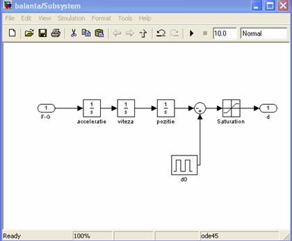 Acum voi prezenta simularea cu ajutorul toolbox-ului Simulink-ului din Matlab: