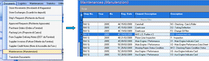 Documents > Maintenances > va fi afisata lista cu toate Specificatiile de lucrare create la bord > se selecteaza cea dorita > dublu click pt a o deschide