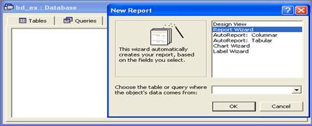 Dupa alegerea optiunii Report Wizard (fig.12.6.2) urmeaza o succesiune de pasi prin care utilizatorul indica particularitatile raportului de creat cu privire la aspectul formal sau de continut. Pentru exemplificare, sa consideram tabelul Mater, a carui structura este prezenta in fig. 12.6.3.