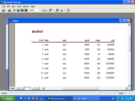 pe ecran continutul fizic al raportului creat (fig. 12.6.9.).
