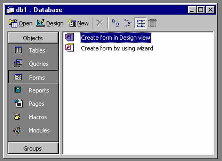 Fig. 8. Caseta DataBase cu butoanele Objects si Groups