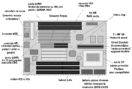 Spre exemplificare, in figura 1.2 sunt prezentate doua placi de baza, prima pentru tipul de carcasa Baby AT, generatia 1995 (a), iar a doua - tipul ATX, cu PENTIUM II Slot1 generatia 1998 (b). Notatiile din figura se refera la: