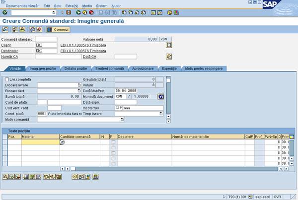 Elementele unei ferestre tipice sistemului informatic SAP sunt prezentate mai jos: