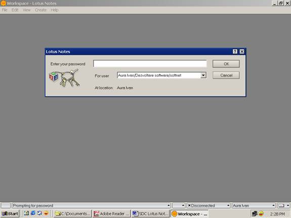 Pentru a folosi Lotus Notes, trebuie sa lansati Notes. La lansarea programului Lotus Notes, este necesara o parola pentru a avea acces la baza de date.