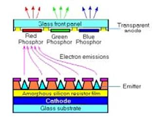 Ecranele cu emisie de cimp Field Emission Display FED, folosesc acelasi principiu ca tuburile catodice, este un tub catodic aplatizat.