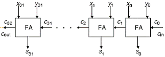 An array multiplier implemented using n-bit adders. Each n-bit adder adds a shifted version of A for a given row and the partial sum of the row above.