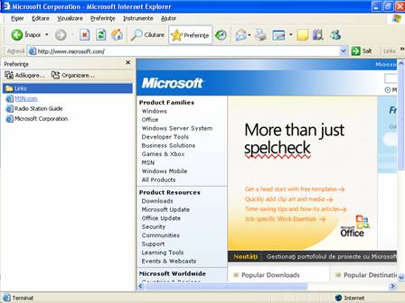 Lista de preferinte include acum o legatura la pagina de pornire a Microsoft, asa cum se arata in ilustratia din pagina urmatoare.