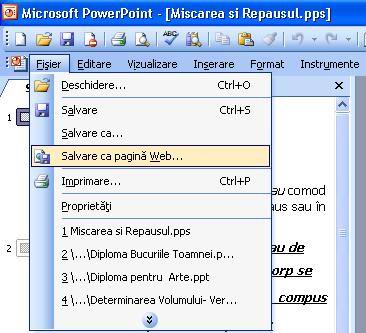 2. Cum puteti creea salva fisierul pps in format "htm"(PAGINA WEB) cu alte cuvinte conversie din "pps" in 'htm'