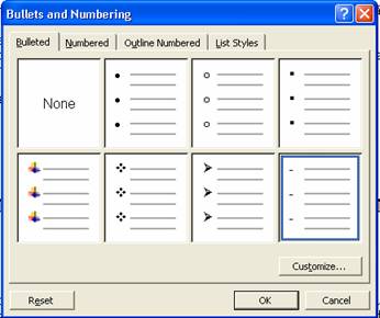 din meniul Format se alege optiunea Bullets and Numbering. In fereastra de
