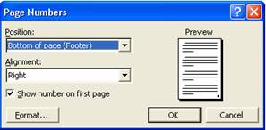 introducerea numarului de pagina se foloseste optiunea Page Numbers din meniul Insert; se