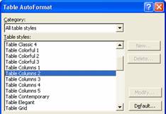 AutoFormat - pune la dispozitie o lista cu formate speciale pentru tabele