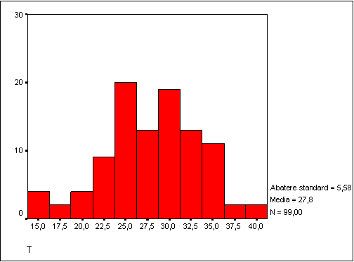Figura nr.8. Distributia scorurilor la scala POPS subscala T