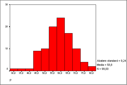 Figura nr.9. Distributia scorurilor la scala POPS subscala P