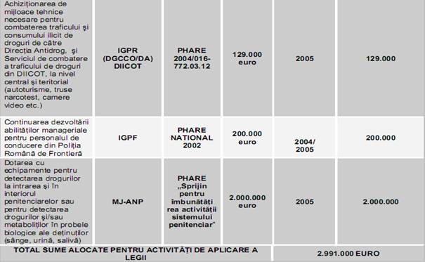 În 2003, s-a implementat la nivel national programul UNODC,, Sistemul National de Control al Drogurilor"