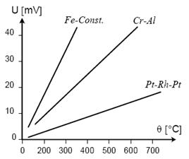 Fig. 3.9. Caracteristicile statice ale unor termocupluri.