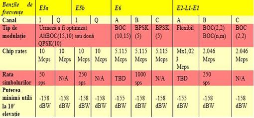 Tabelul 1.6. Spectrul de frecvente Galileo