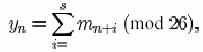 adaugand s litere succesive ale mesajului pentru a obtine litera yn. Se poate arata ca redundanta secventei y este aceeasi cu cea a secventei m, dar structura a fost disipata. Astfel, frecventele literei in y vor fi mai apropiate decat in m, frecventele in diagrama deasemenea apropiate, etc. Intr-adevar, orice operatie reversibila care produce o litera in afara fiecarei litere si care nu are o memorie infinita, are o iesire cu aceeasi redundanta ca si intrarea. Statisticile nu pot fi nicicodata eliminate fara compresie, dar pot fi imprastiate (expandate).