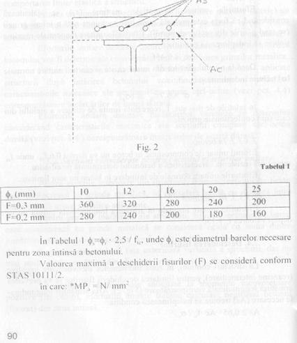 ss = eforturile unitare in armatura longitudinala din Tabelul l (in MPa) sunt functie de diametrul armaturii si depind de valoarea admisa a deschiderii fisurii (F)